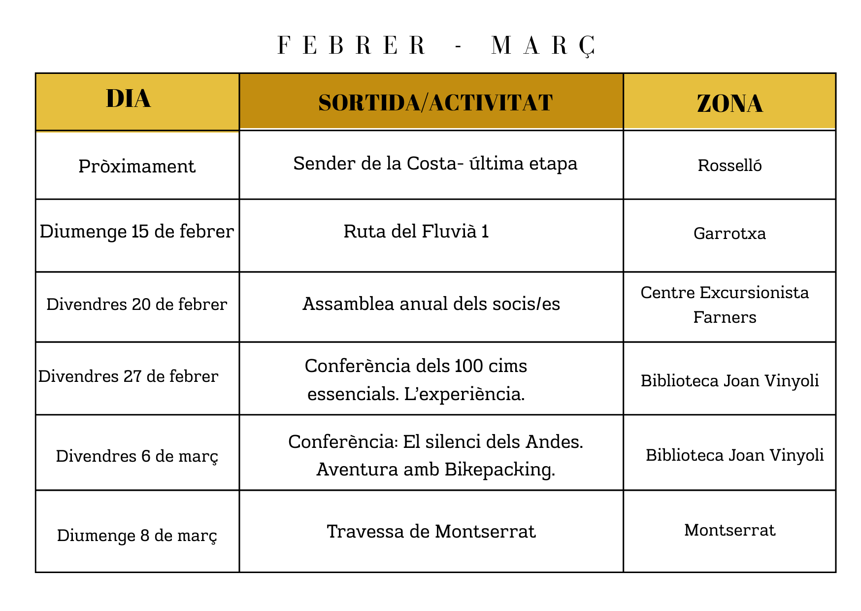 Calendari d'activitats mensual